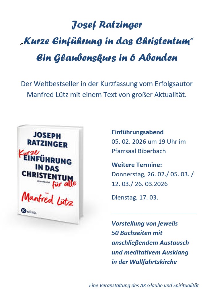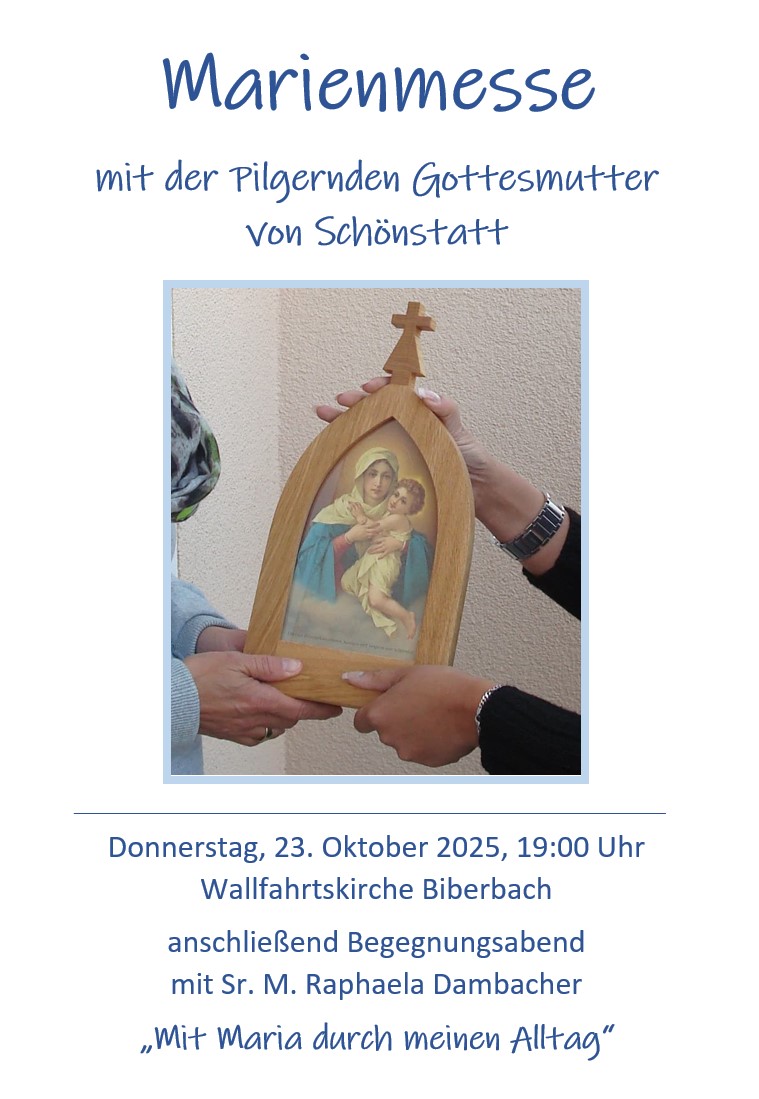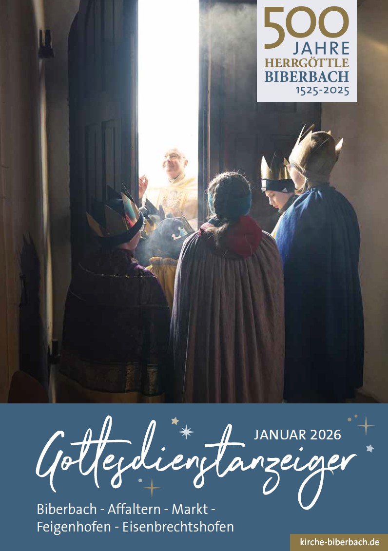 Menschen kommen und gehen als Pilger, aber im Markt Biberbach leben auch über 2.900 Katholiken, die zusammen mit der Pfarrei Affaltern, den Filialgemeinden Markt, Feigenhofen und Eisenbrechtshofen in einer Pfarreiengemeinschaft versuchen, das Christsein zu leben. In Gottesdiensten feiern wir unseren Glauben am Sonntag. Im Alltag versuchen wir unseren Glauben umzusetzen im Leben.
