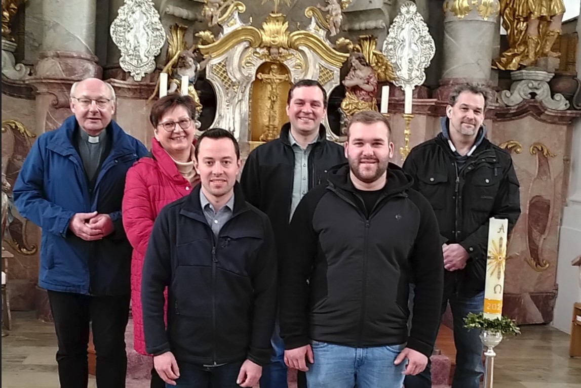 Hintere Reihe: Pfarrer Dr. Ulrich Lindl (Vorstand), Gertrud Englisch (Kirchenpflegerin), Benedikt Maier, Christian Fries